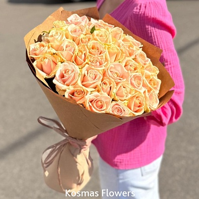 - Качественная упаковочная бумага - половина успеха. Сейчас в моде нейтральные, пастельные оттенки. Естественно выглядит крафтовая бумага, рекомендуемая для композиций в стиле минимализм.