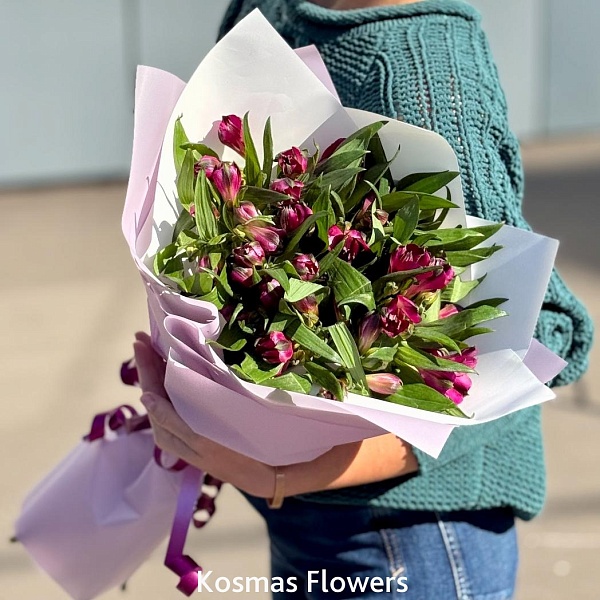 Букет-микс из 11 альстромерий - яркое цветочное поздравление на любой праздник. На языке цветов альстромерия символизирует дружбу и любовь. Из-за особой формы лепестков ее также называют перуанской лилией – такие цветы выглядят очень нежными и хрупкими, но при правильном уходе они могут простоять очень долго. Букет-микс составлен из растений с красными, желтыми, розовыми, двухцветными бутонами – такое разнообразие оттенков привлекает внимание и поднимает настроение.