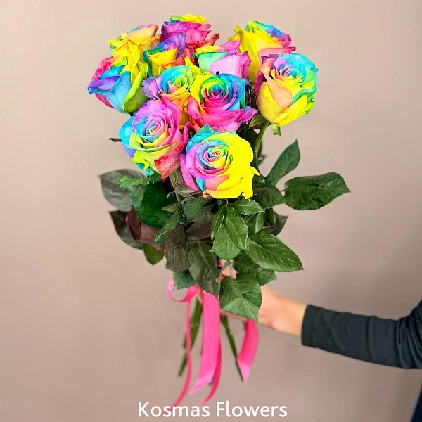Букет 11 роз Эквадор Rainbow