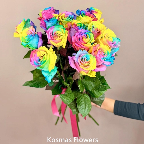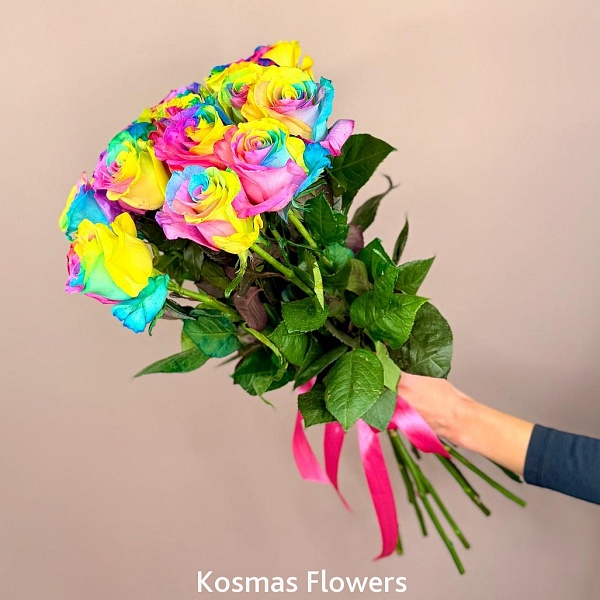 Букет 15 роз Эквадор Rainbow