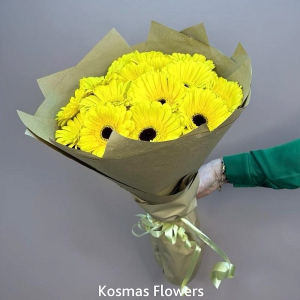 Букет 15 жёлтых гербер