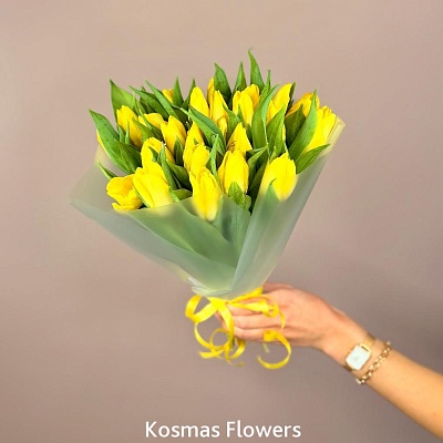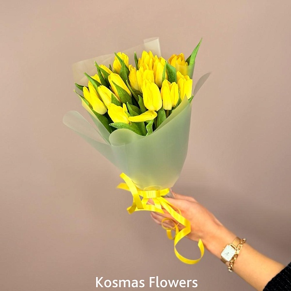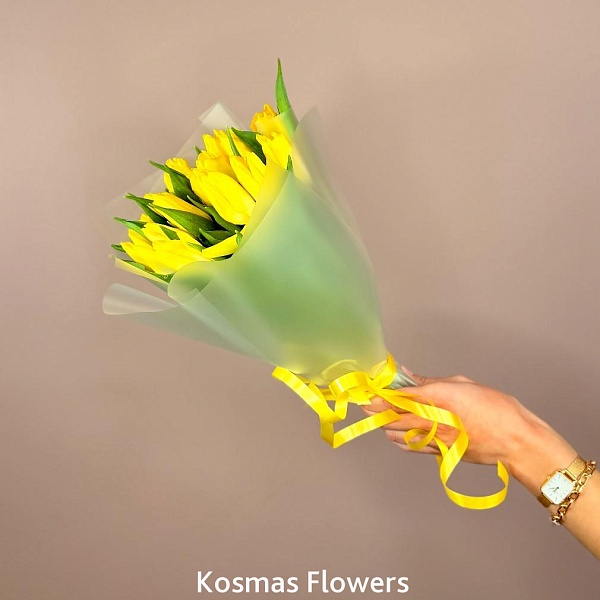 Букет 15 жёлтых тюльпанов