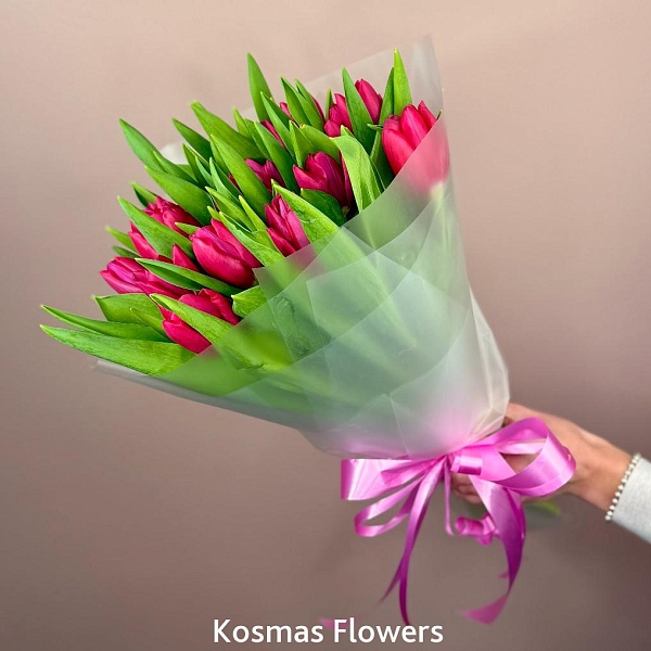 Букет 33 малиновых тюльпана