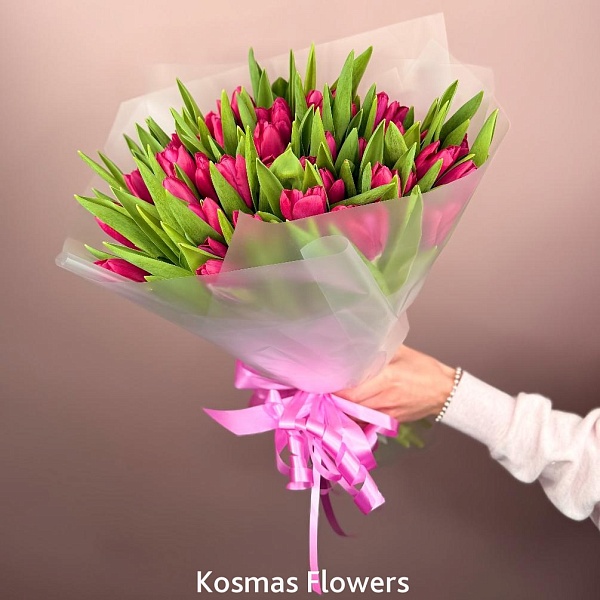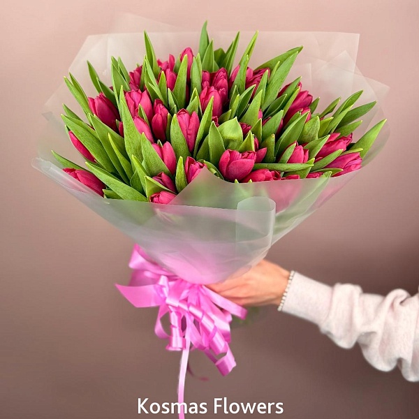 Букет 51 малиновый тюльпан