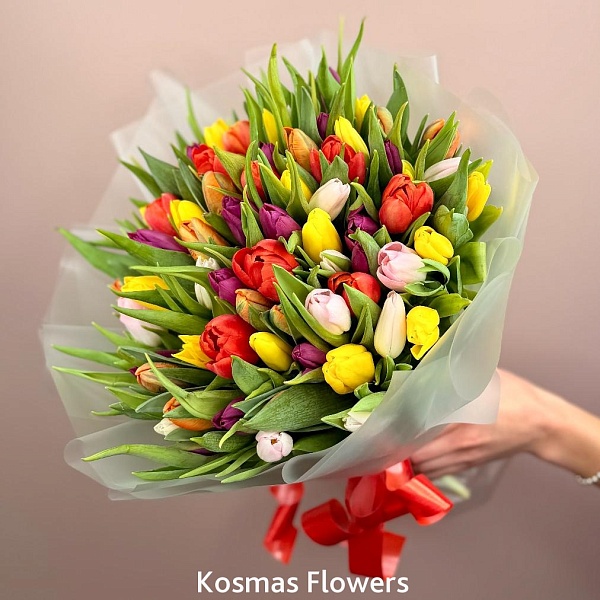 Букет 77 тюльпанов Микс