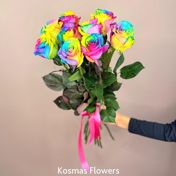 Букет 9 роз Эквадор Rainbow