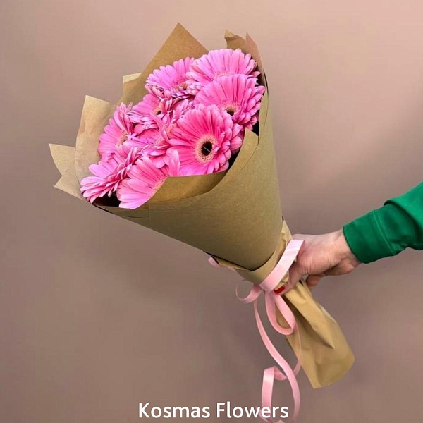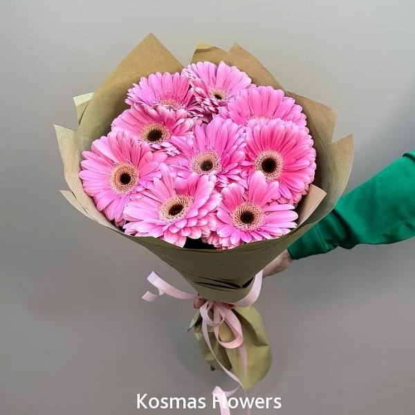 Букет 9 розовых гербер